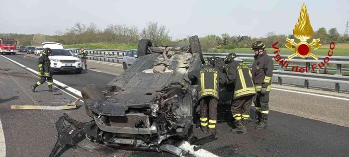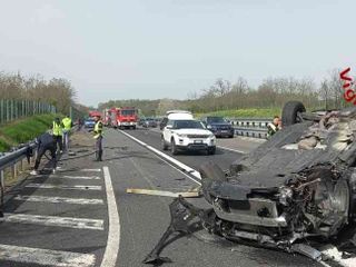 Autostrada A21 parzialmente chiusa per un'auto ribaltata in direzione Piacenza