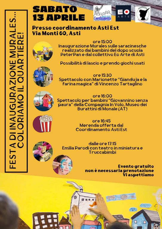 Che verrà presentato sabato pomeriggio, nell’ambito di una festa ad ingresso gratuito in cui sarà possibile prendere e lasciare giochi usati, oltre ad assistere a uno spettacolo di marionette. Non mancheranno il truccabimbi e la merenda offerta dal Coordinamento Asti Est.