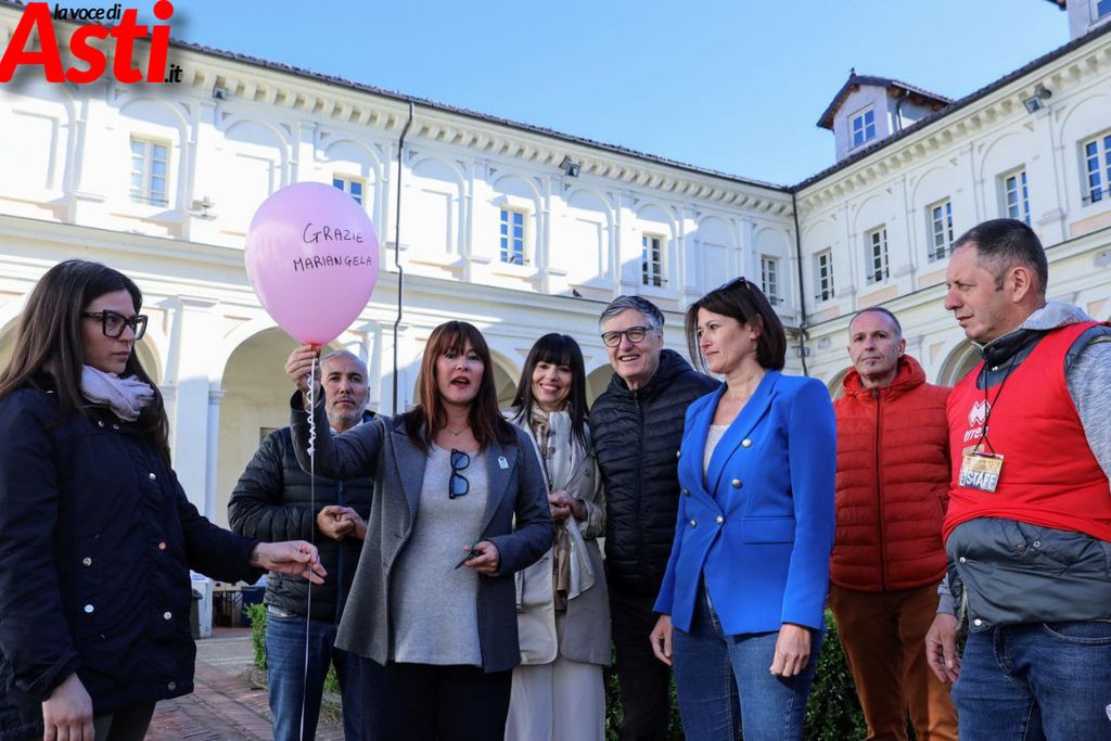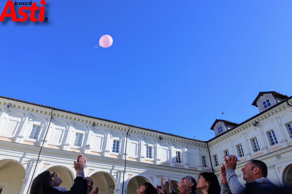 Un palloncino rosa dedicato a Mariangela Cotto e poi lasciato volare, come a raggiungerla.