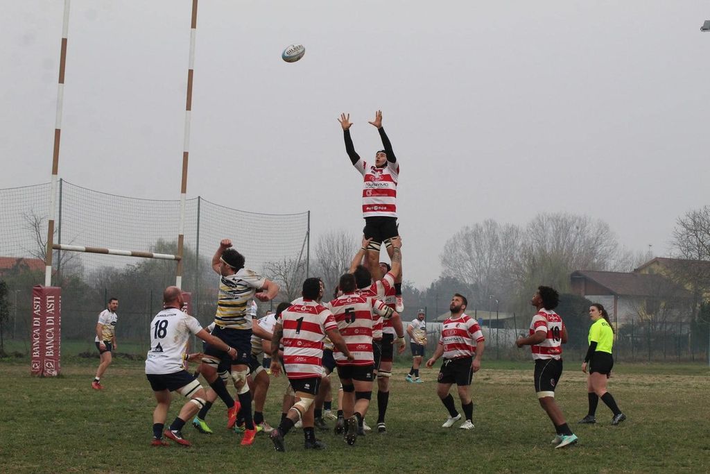 Il Monferrato esce sconfitto a Parma 26-17 nel terzultimo turno di Serie A e resta davanti ad Alghero e Amatori Milano in classifica, a +5 sull’ultimo posto a due giornate dal termine del campionato. Partenza difficoltosa per il XV astigiano, che carbura come un diesel durante la gara e grazie a un buon secondo tempo va vicino a conquistare punti sfiorando il sigillo su piazzato nel finale. Primo tempo chiuso 19-3 (piazzato di Muzzi sul 7-0), nella ripresa segna subito Dapavo (trasforma Muzzi per il 19-10), e va a meta De Sarro nella fase finale per il definitivo 26-17 (trasforma Muzzi).