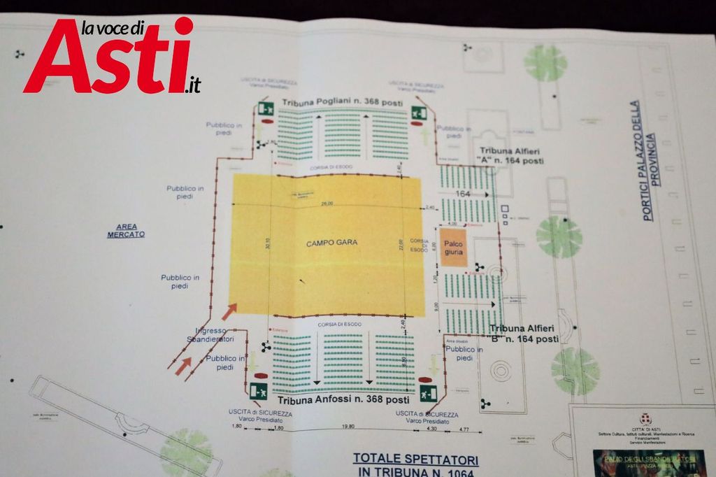 Come annunciato, quest'anno il Paliotto tornerà nella sede della sua prima edizione, piazza Alfieri. Il campo gara sarà montata davanti alla Provincia, essendo sabato ancora giornata di mercato la piazza verrà chiusa dalle 19.