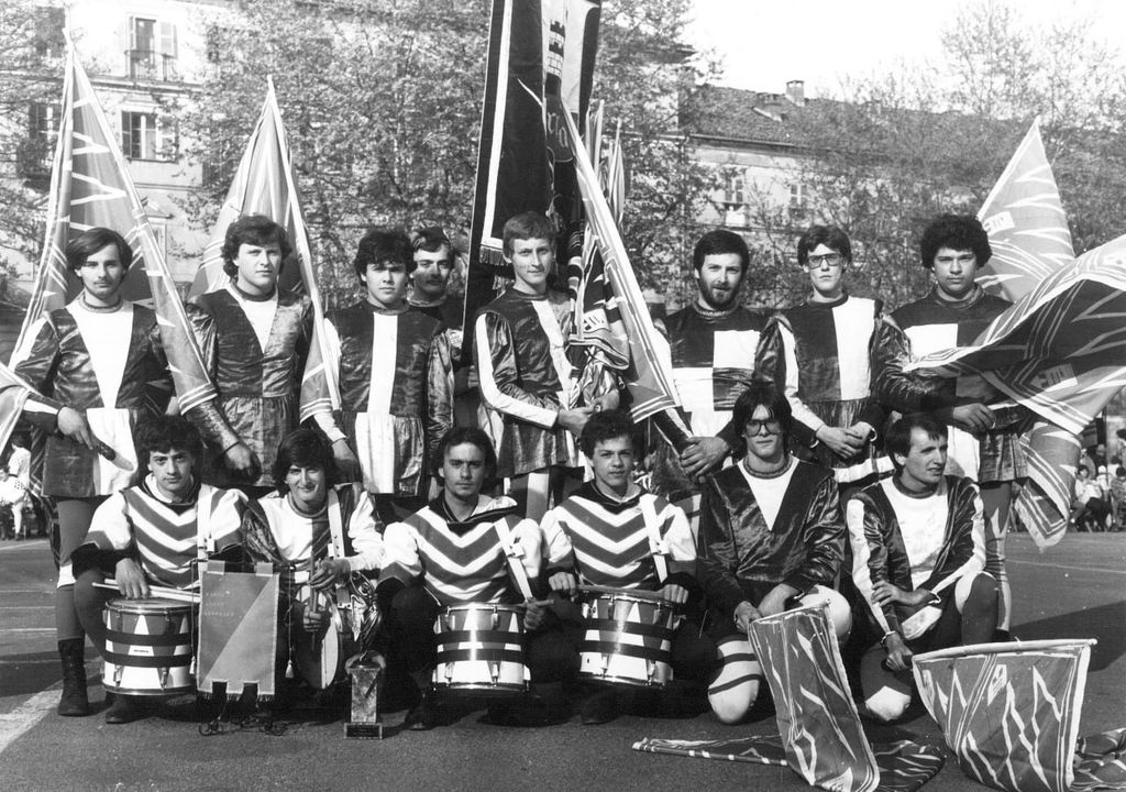 Come racconta infatti il libro "Il Palio degli Sbandieratori . Musiche e bandiere nel cielo, i colori del cuore" scritto dal nostro fotografo Efrem Zanchettin, grandissimo conoscitore della manifestazione e da Massimo Mazzetti: "Alla prima edizione del Palio degli Sbandieratori parteciparono nel seguente ordine di esibizione: Borgo Tanaro Trincere Torrazzo. Rione San Silvestro - Rione San Paolo - Rione Rattedrale - Borgo Santa Maria Nuova (am- messo alla sfida per volontà degli altri gruppi partecipanti) - Borgo Torretta Nostra Signora di Lourdes e Borgo San Lazzaro San Domenico Savio.