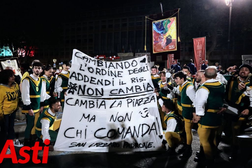 Ad aggiudicarsi il drappo disegnato da Giorgio Vassallo è stato appunto San Lazzaro mentre quello di Carolina Avidano (entrambi sono studenti del Liceo artistico di Asti) per i musici è andato a Santa Caterina.