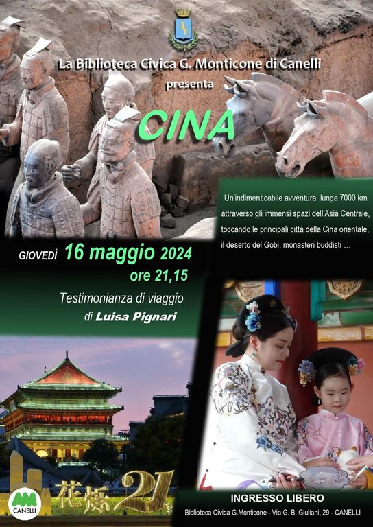 Giovedì 16 maggio, alle 21,15, Luisa Pignari proporrà un'indimenticabile avventura lunga 7000 km, attraverso "La via della seta", nella sala Aliberti della Biblioteca Monticone, in via G. B. Giuliani 29, a Canelli.