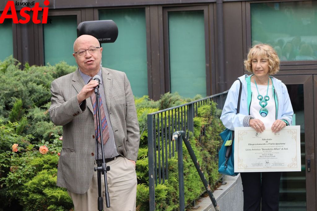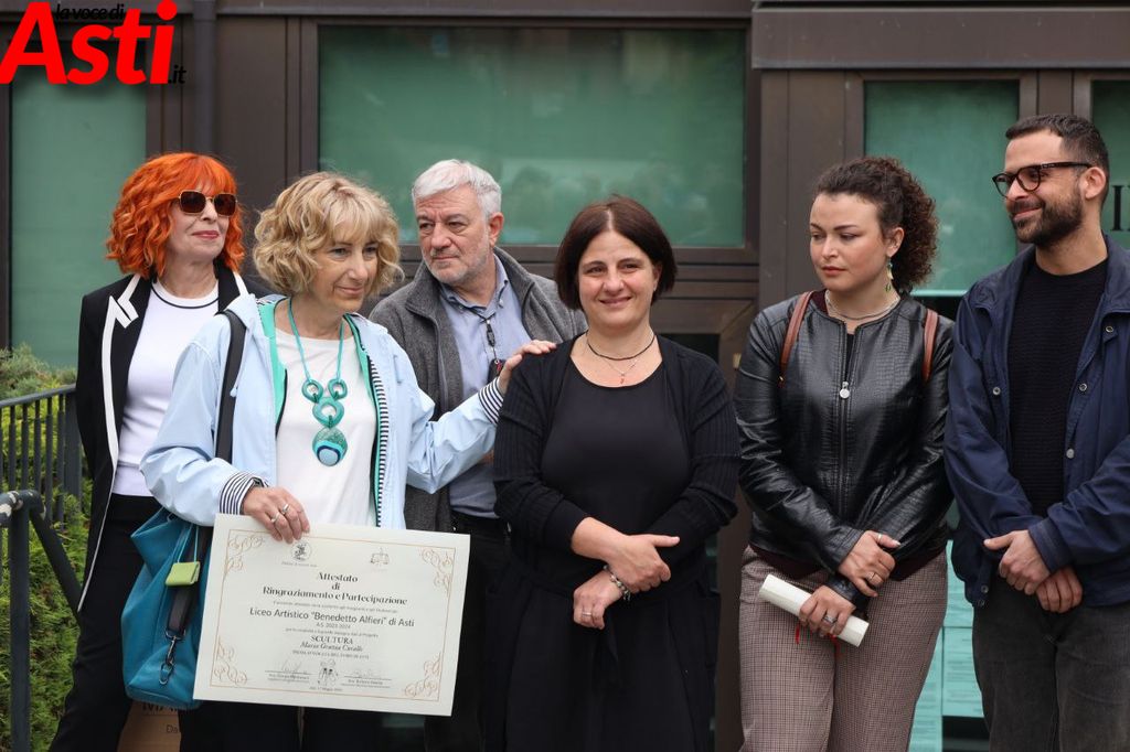 L’opera, realizzata in ferro trattato con tecniche di lavorazione speculare e tridimensionale, è stata sviluppata da un talentuoso gruppi di degli studenti e delle studentesse della VF del liceo artistico Alfieri di Asti (Sara Mongillo, Lorenzo Livorsi, Chiara Bacco, Valentina Oliva, Federico Pizzo, Laura Chanoux e Melissa Ruffa). La dirigente scolastica, dottoressa Maria Stella Perrone, ha elogiato l’impegno e la competenza dimostrati dai giovani artisti, sostenuti "da insegnanti di eccezionale valore" (professoresse Silvia Caronna e Giorgia Sanlorenzo e professor Stefano Scagliola).