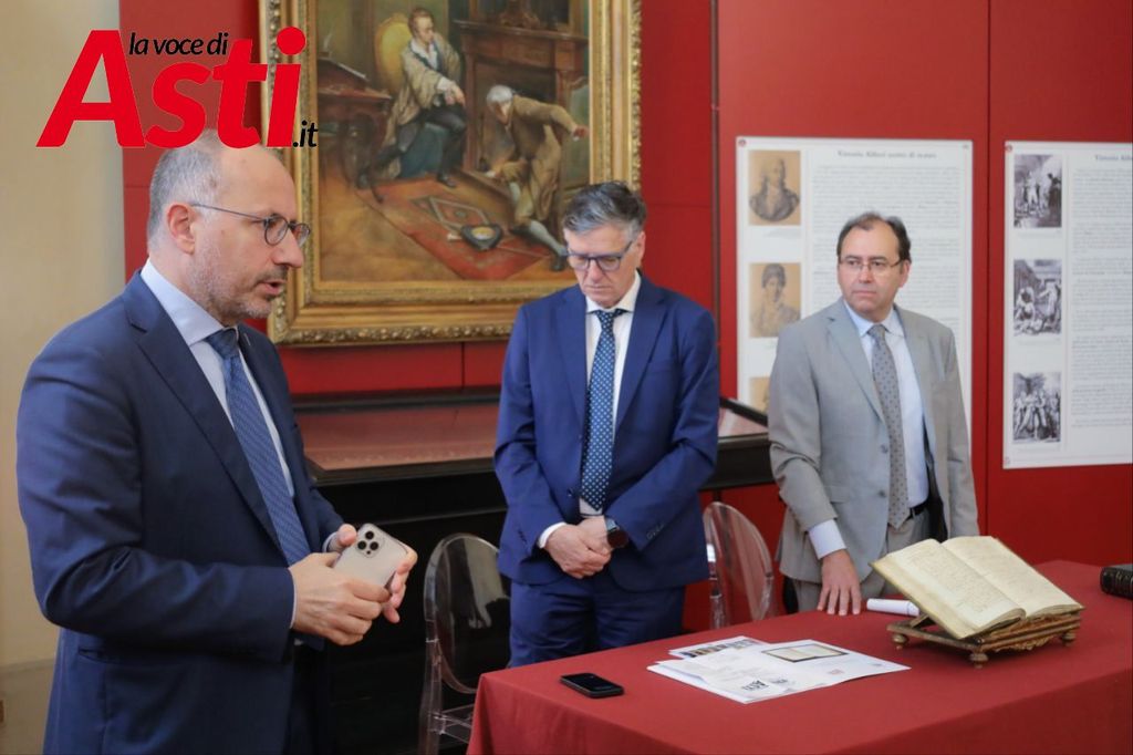 Il documento, risalente al 1789, è stato presentato dal presidente della Fondazione Centro di Studi Alfieriani, Enrico Mattioda, e dal presidente delle Fondazioni Cassa di Risparmio di Asti e Asti Musei, Mario Sacco.