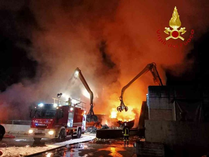 Le fiamme sono divampate da un cumulo di ferro da recuperare. Intervenuti anche i carabinieri