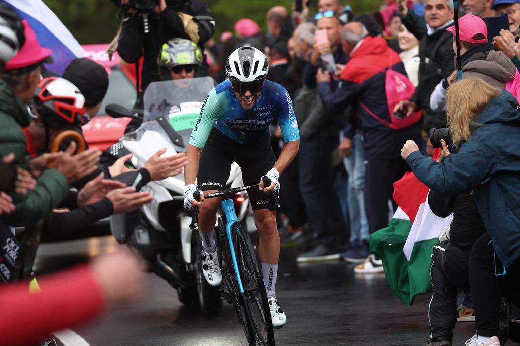 Il passista che corre per la francese Decathlon AG2R La Mondiale (secondo hurrà dopo Paret-Peintre, O'Connor quarto in generale) faceva parte di un gruppo di 19 che poi si è via via assottigliato rimasto poi con i protagonisti delle tappe mosse di questa Corsa Rosa: Narvaez, Alaphilippe, Steinhauser, Pelayo Sanchez e Plapp (l'unico che non ha ancora vinto).