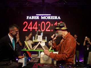 Il primato esistente, detenuto fin dal 2014 dal dj polacco Norberto Loco, che aveva resistito per 200 ore al Temple Bar di Dublino, è crollato alle 5 di venerdì 24 maggio: il dj saluzzese – 59 anni all’anagrafe, la determinazione di un attivista, la concentrazione di un guru e l’energia di un adolescente – è andato oltre. Dopo un altro giorno e mezzo di musica no stop - con la facoltà di fermarsi 5 minuti ogni ora o di accumulare le pause - Faber Moreira è arrivato a 244 ore, battendo ogni scommessa possibile.