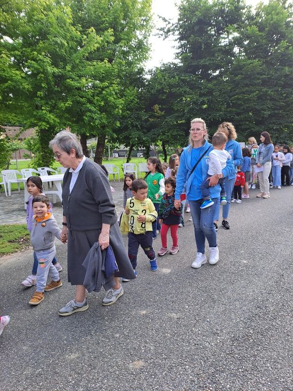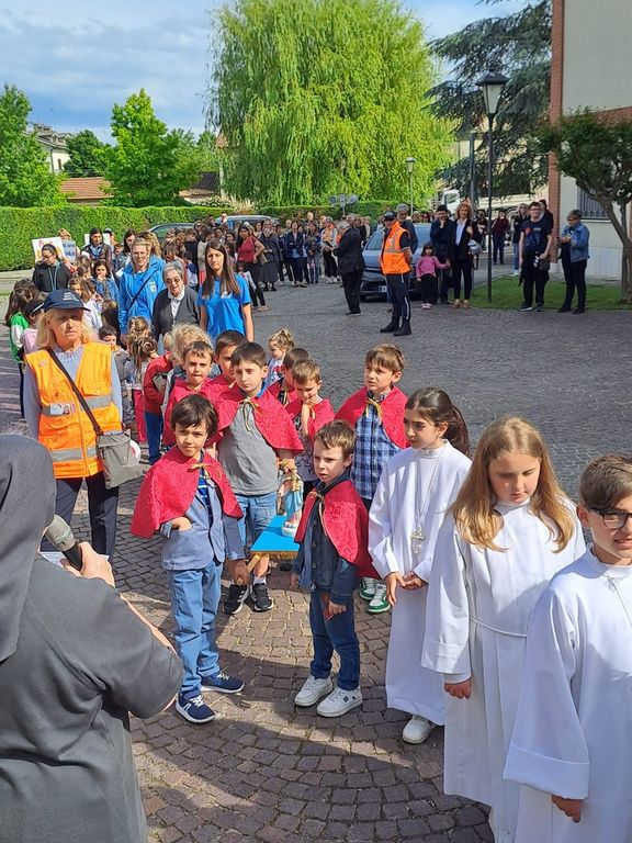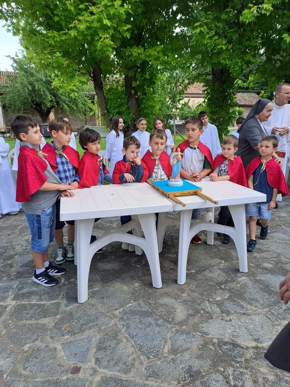 Tradizionale Festa in onore di Maria Ausiliatrice lo scorso Il 24 maggio, che ha avuto luogo nel cortile dell'Istituto "Nostra Signora delle Grazie" di Nizza Monferrato. Alle 16.30, un folto pubblico composto da bambini delle scuole dell'infanzia e primarie, genitori, nonni e autorità cittadine si è radunato per onorare Maria Ausiliatrice.