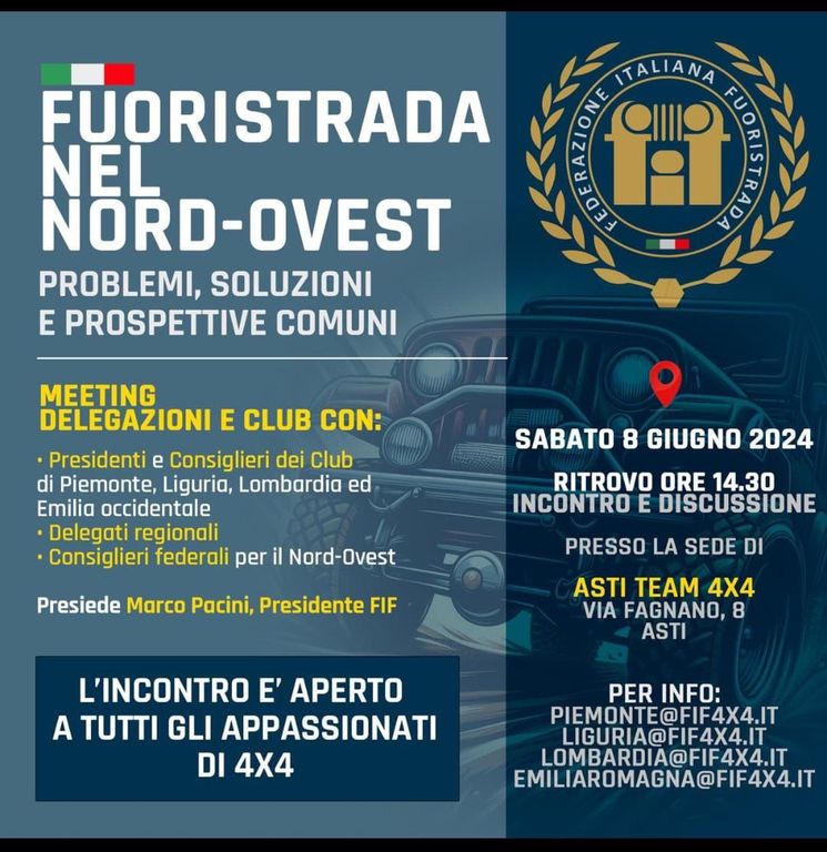 Per informazioni: piemonte@fif4x4.it / liguria@fif4x4.it / lombardia@fif4x4.it / emiliaromagna@fif4x4.it