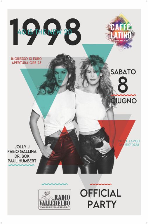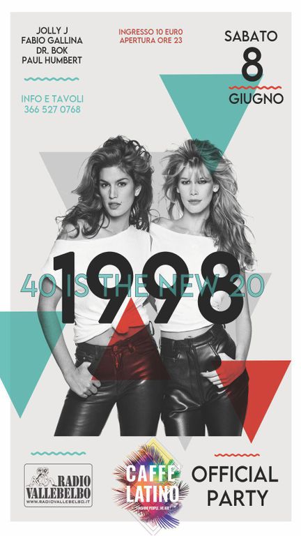 La festa ha un nome significativo : “1998 “e lo slogan la dice lunga: “40 is the new 20” , a sottolineare quanta voglia di divertimento ci sia tra le generazioni che hanno frequentato la Movida albese negli anni del suo massimo splendore.