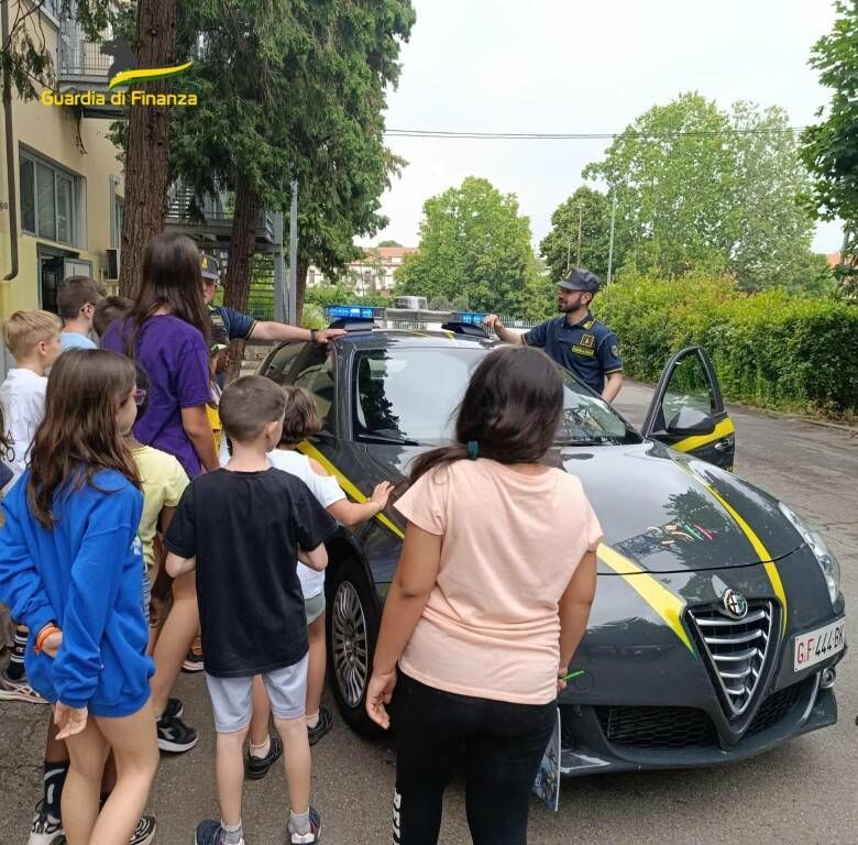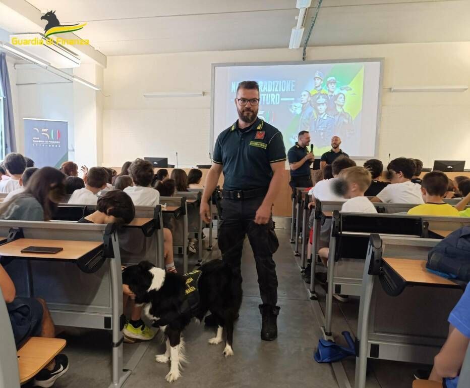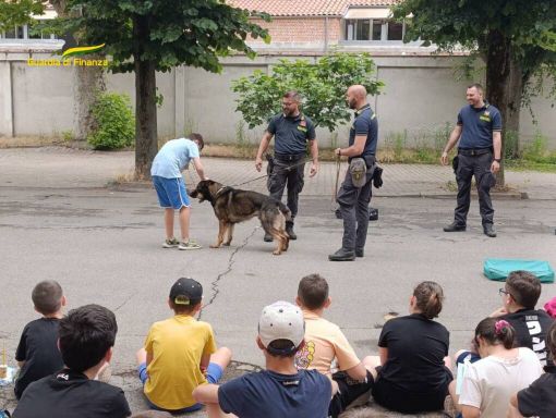 250 anni della Guardia di Finanza: i ragazzi dei centri estivi astigiani a lezione con i cani Maya e Wood [foto]