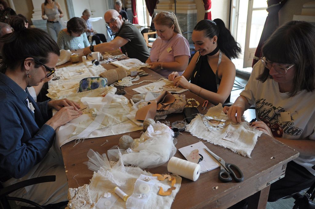 La sala Gianni Basso del Teatro Alfieri trasformata per due giorni in una sartoria sentimentale sospesa nel tempo, con oltre 35 “sarti” d’occasione che, con ago e filo, pizzi e merletti, hanno raccontato le proprie emozioni.