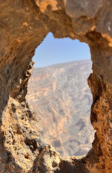 Il giorno successivo accompagnati da Salaman, una guida del posto, andiamo alla scoperta della Jebel Shams Balcony Walk; si tratta di un trekking in piano lungo circa 20 km da effettuare ad alta quota, 2500 metri s.l.m. E’ un popolare sentiero escursionistico dell'Oman, rinomato per la sua spettacolare vista sul Grand Canyon d’Arabia e situato nelle montagne di Al Hajar. Offre una passeggiata con percorsi unici che mostrano paesaggi da “film Western”, gole profonde e una natura mozzafiato. Vedere mio figlio felice e pronto a seguire il passo senza mollare, durante la lunga camminata, è stata una bellissima emozione inaspettata. C’è solo una piccola nota stonata, siamo nel periodo del Ramadan e qui è tutto più complicato.