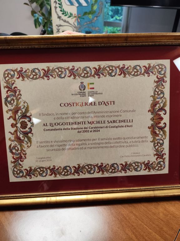 E senza dimenticare il periodo del Covid cui – pur ovviamente non essendone rimasta immune – Costigliole d’Asti fece registrare tassi relativamente contenuti di contagi e di decessi anche grazie alle decisioni adottate dall’Amministrazione e alla vigilanza sul rispetto delle norme, discreta ma rigorosa, attuata dai carabinieri al comando del Luogotenente Sarcinelli.