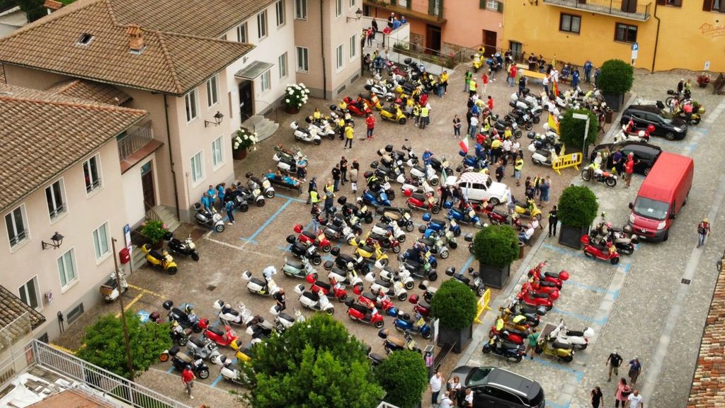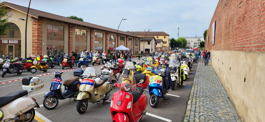 L’evento è iniziato venerdì pomeriggio con l’accoglienza dei vespisti a San Damiano d’Asti, dove hanno visitato il Palazzo Comunale, la panchina gigante e hanno potuto degustare prodotti tipici del territorio.