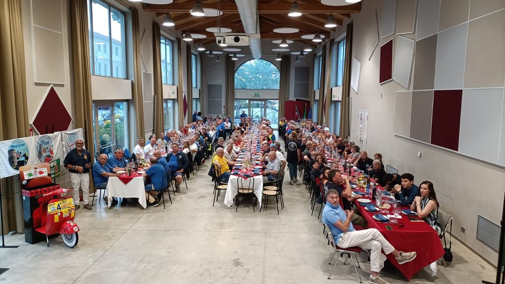 La giornata si è conclusa con una cena al Foro Boario di San Damiano d’Asti, organizzata dal catering Cantamessa. Alla cena hanno partecipato il sindaco Davide Migliasso e il vice sindaco Flavio Torchio. Durante la serata, Frederick Rosso, referente VCI del Piemonte, ha omaggiato i due Vespa Club con una targa VCI.