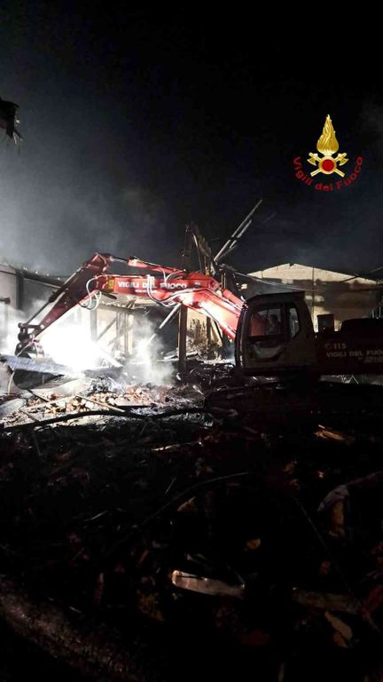 Nessun ferito ma ingenti danni per l'incendio al capannone di materiali edili [FOTO]