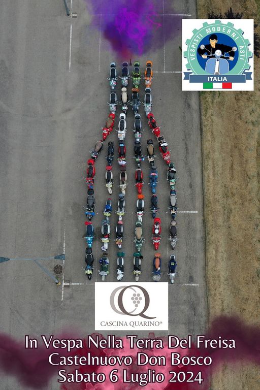 Comprensibile la soddisfazione del presidente Roberto Borsato: "Anche tra noi organizzatori si e percepito che è stato davvero un bel evento vespistico dedicato al 75° anno della Nascita del Vespa Club Italia". Celebrato anche con una splendida 'coreografia' in piazza Goria, a Castelnuovo Don Bosco, dove numerose Vespe hanno ricreato la forma di una bottiglia, omaggiando le due Cantine che hanno collaborato all'evento.