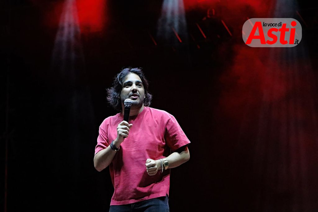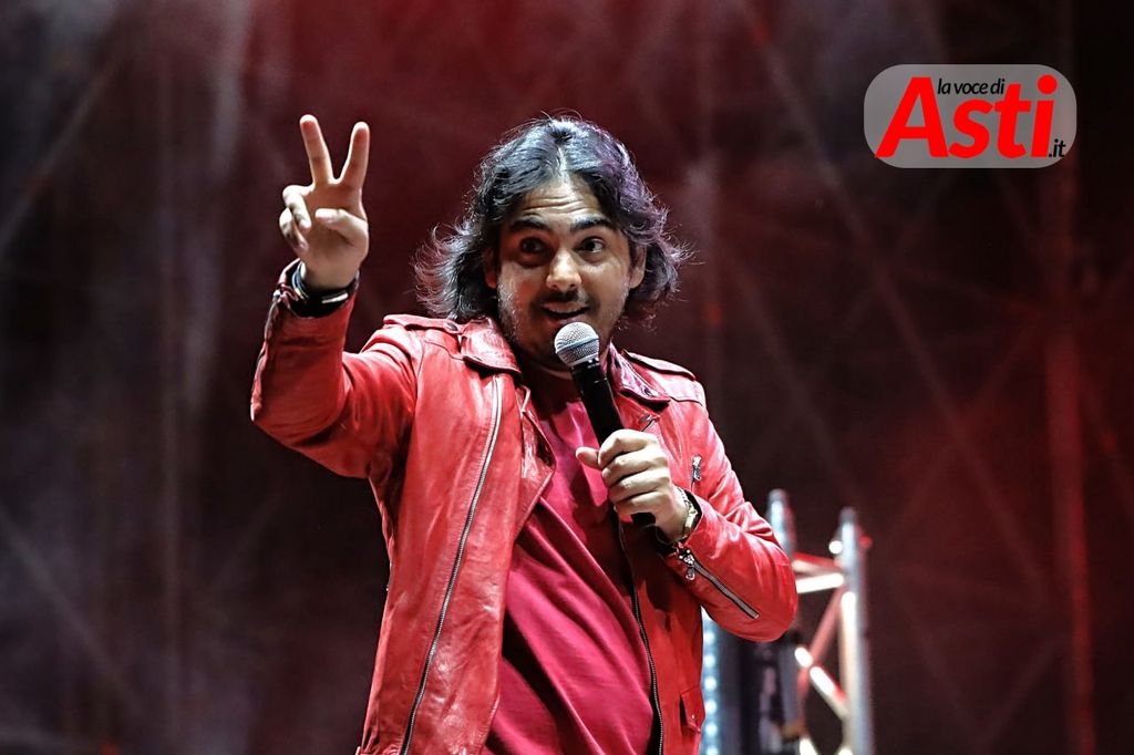 "Un comico che apre Asti Musica? Coerenza un...": Max Angioni apre il festival astigiano con ironia e bravura, dopo un acquazzone estivo [FOTO E VIDEO]
