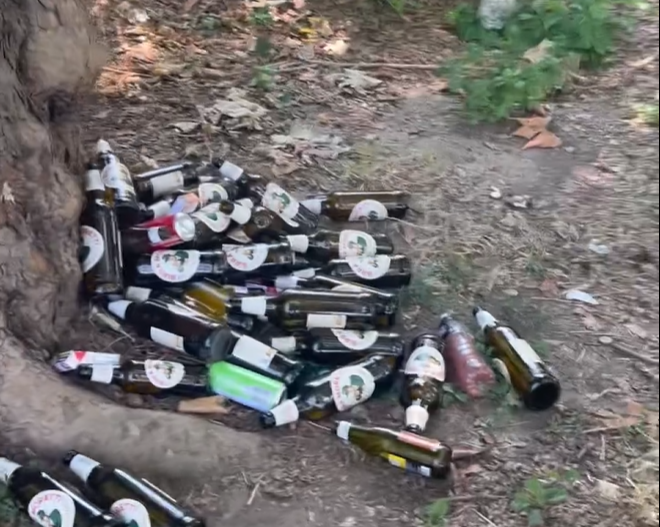 L'inciviltà arriva anche in piazza Campo del Palio: sotto gli alberi una distesa di bottiglie di birra vuote [VIDEO]