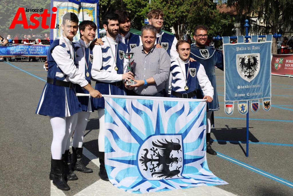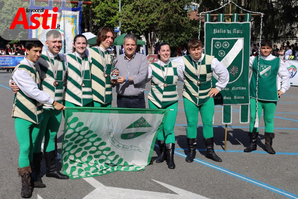 Dieci i gruppi in gara di cui cinque astigiani: Alfieri di Costigliole d'Asti, Associazione sbandieratori Isabella D'Este e Palio della Capra d'oro, Borgo Tanaro, Borgo Torretta, Contesa Estense – Lugo, Gruppo Sbandieratrici e Musici di Capriolo, Rione Cattedrale ,Le Fiamme di Caracosta – Cerreto Guid,i Rione San Martino San Rocco, Sbandieratori Torre dei Germani – Busnago (MB).