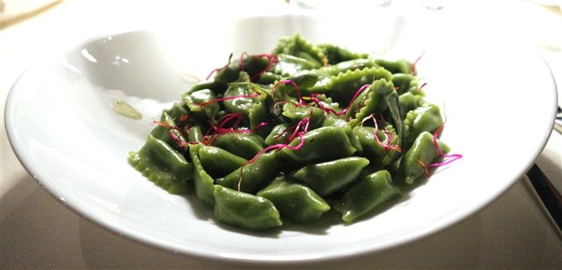 e i Plin di Ortiche ripieni di Borragine, Fiori di Zucchino e Ricotta.