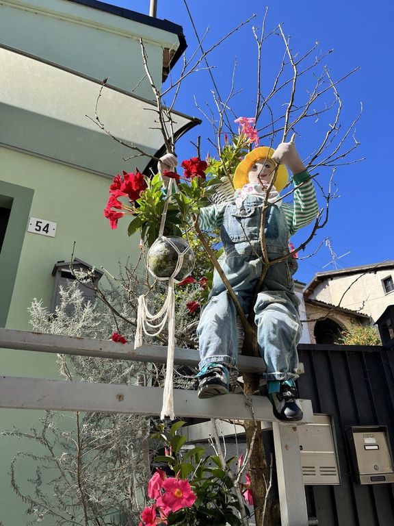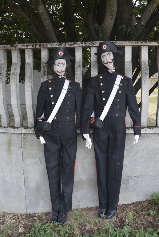 Cosa sono? Pupazzi a grandezza naturale, che da maggio a ottobre popolano le vie di Maranzana, danno loro colore e nuova vita. C'è il babacio del salumiere, quello del marinaio, c'è la famiglia messa in area pic nic, c'è la coppia di innamorati al Belvedere. Con papà ancora non erano esposti: eppure lo sento. Lo sento il fascino di una terra che ha tante cose da dire, che urla in silenzio ciò che ha dentro: un mondo.