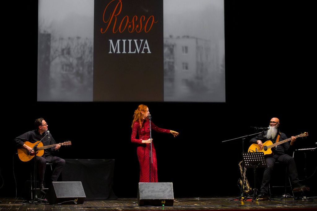 In scena Daniela Placci, attrice e cantante romagnola con il duo composto da Mauro Isetti (basso acustico, contrabbasso, oboe, sax, melodica, percussioni e cori) ed Egidio Perduca (chitarra classica e acustica, pianoforte e cori).