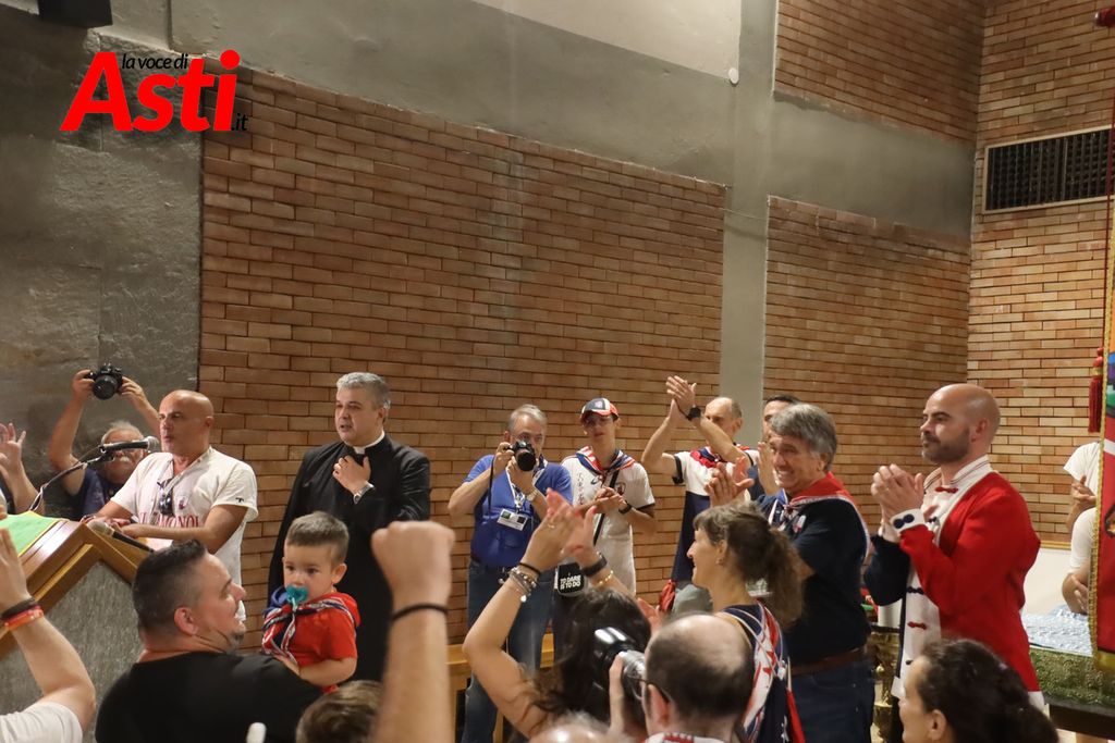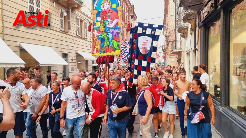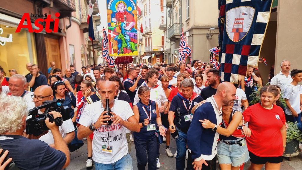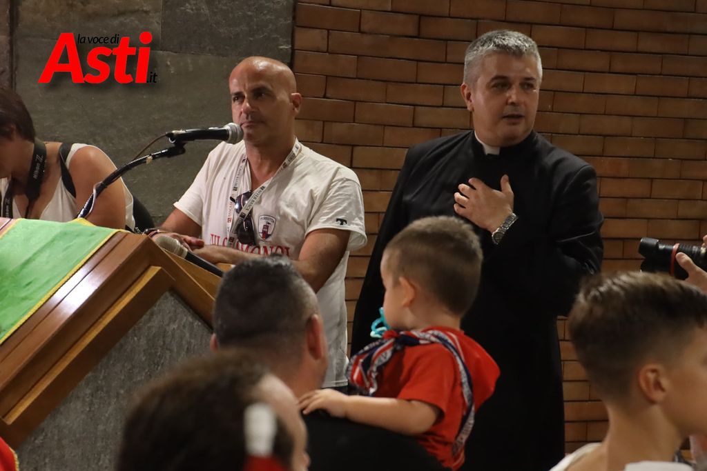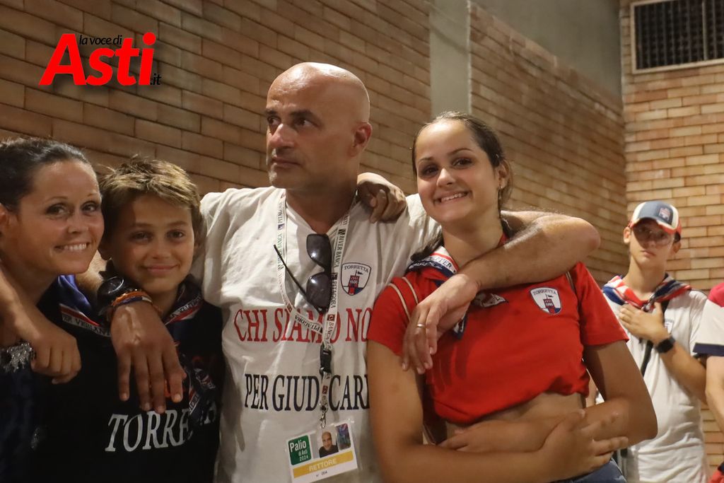 Perché la Torretta è un borgo che fa Palio sempre nella buona (rara) e nella cattiva (spesso) sorte paliesca. E' un borgo costruito intorno ad un senso di comunità: una piazza, una chiesa, un quartiere. Quando vince la Torretta, al netto che una vittoria è una vittoria per chiunque e di questo non si discute, capisci che dietro ogni fantino e ogni cavallo c'è un popolo. Borgata periferica la Torretta, dove forse è più di altre parti c'è un senso di quartiere di appartenenza. Il rettore, Davide Penna, che nella Torretta è nato e cresciut,  lì ha le radici di suo padre, l'indimenticato Giovanni che stasera è stato ricordato. Il rettore ha parlato delle campane, che hanno suonato a lungo in attesa del corteo festante di ritorno da piazza Alfieri.