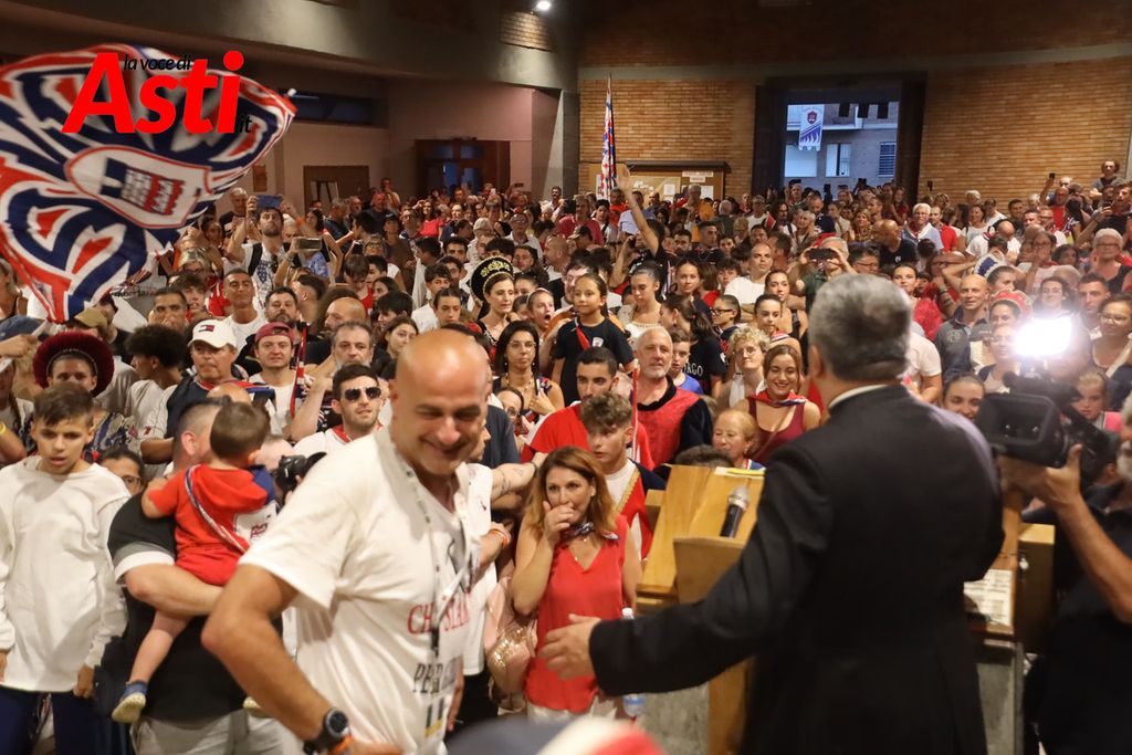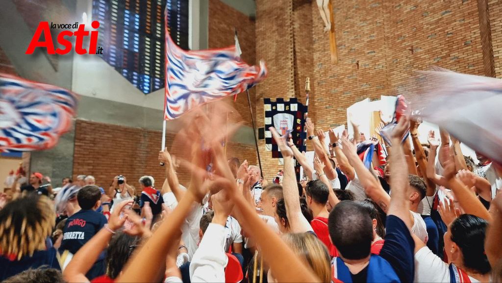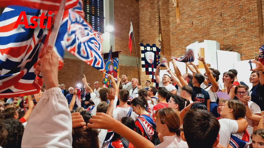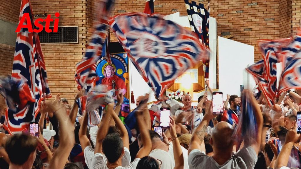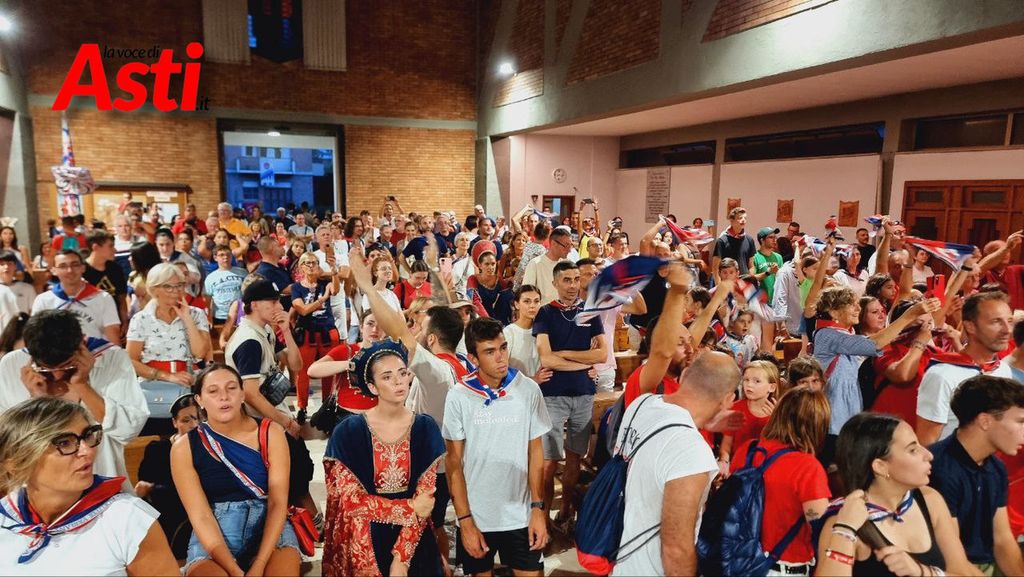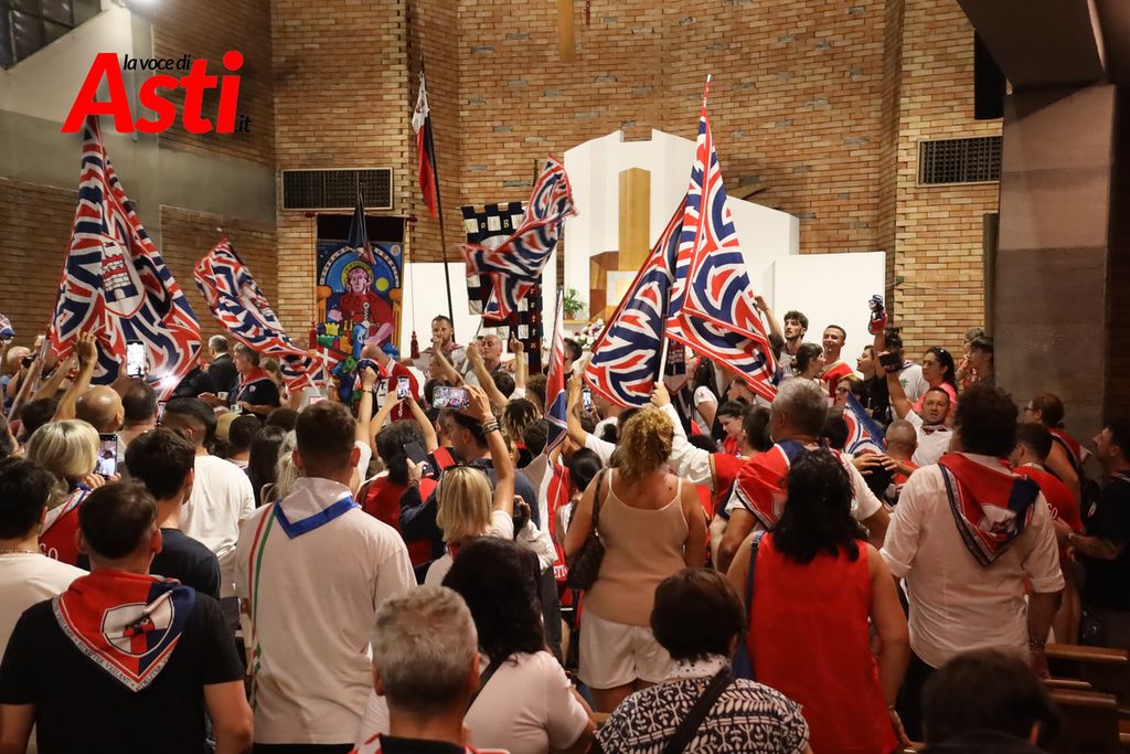 Il giubilo del popolo rosso bianco blù nella chiesa del borgo. La vittoria mancava dal "Palio del lunedì", nel 2013.