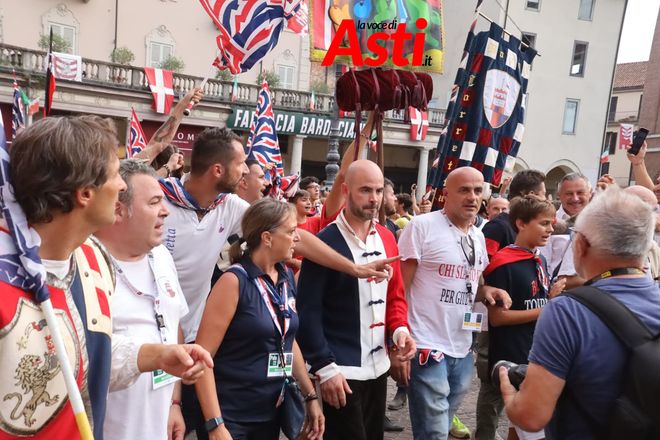 Come sempre, la cerimonia della bandiera è l'atto conclusivo del Palio, quello che sancisce l'ideale "dominio" del vincitore sulla città. Poco dopo la vittoria della piazza, il borgo vincitore si reca in piazza San Secondo per sostituire la bandiera del vincitore precedente (in questo caso Santa Maria Nuova) con la propria.
