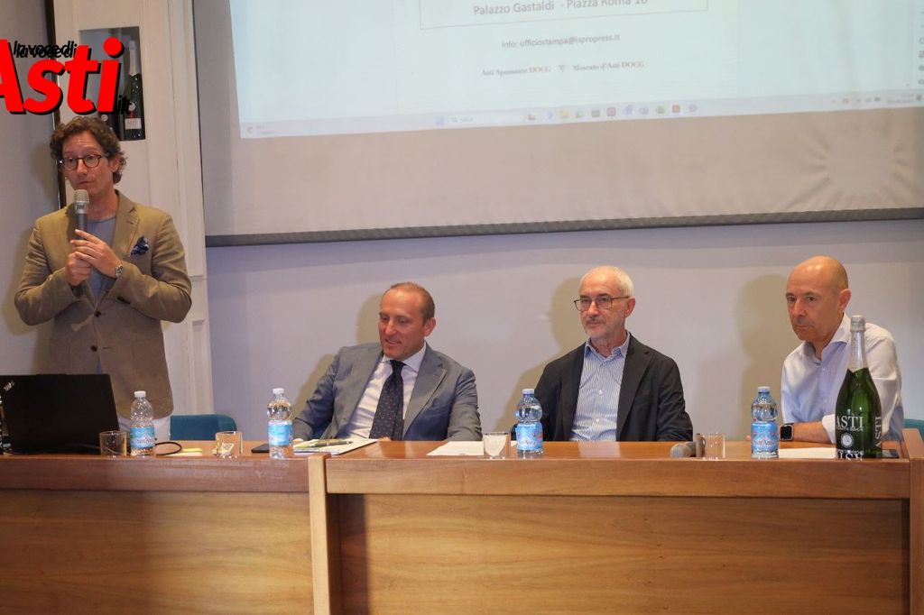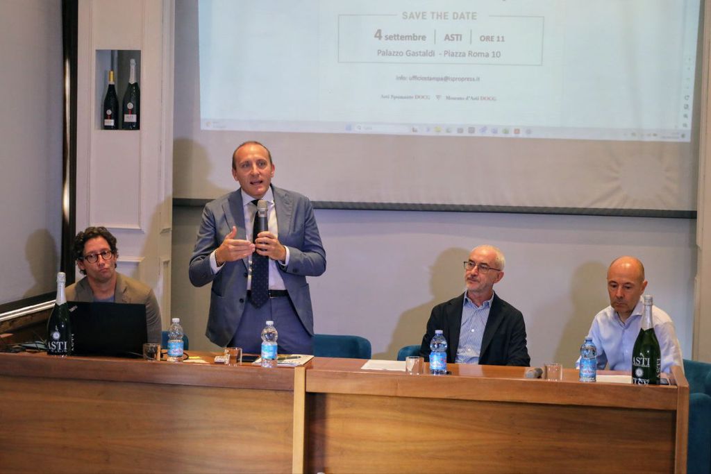 Stefano Ricagno, presidente Consorzio Asti Docg, Lorenzo Barbero, vicepresidente senior Consorzio Asti Docg, Giacomo Pondini, direttore Consorzio Asti Docg, Guido Bezzo, responsabile di laboratorio Consorzio Asti Docg, hanno analizzato i dati di produzione e vendita.