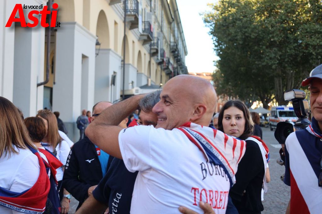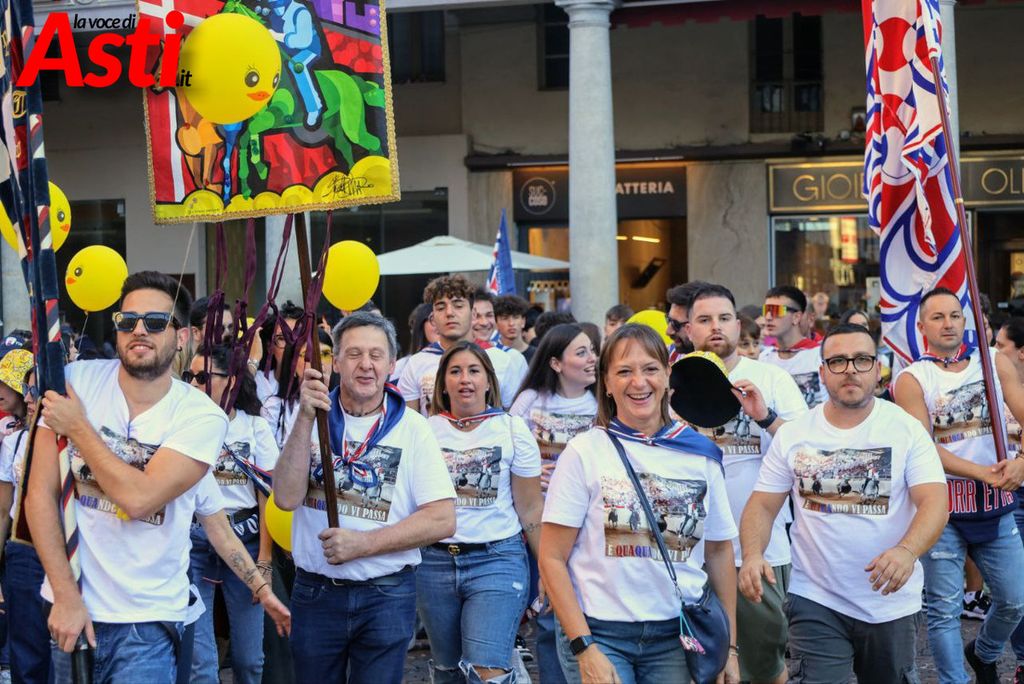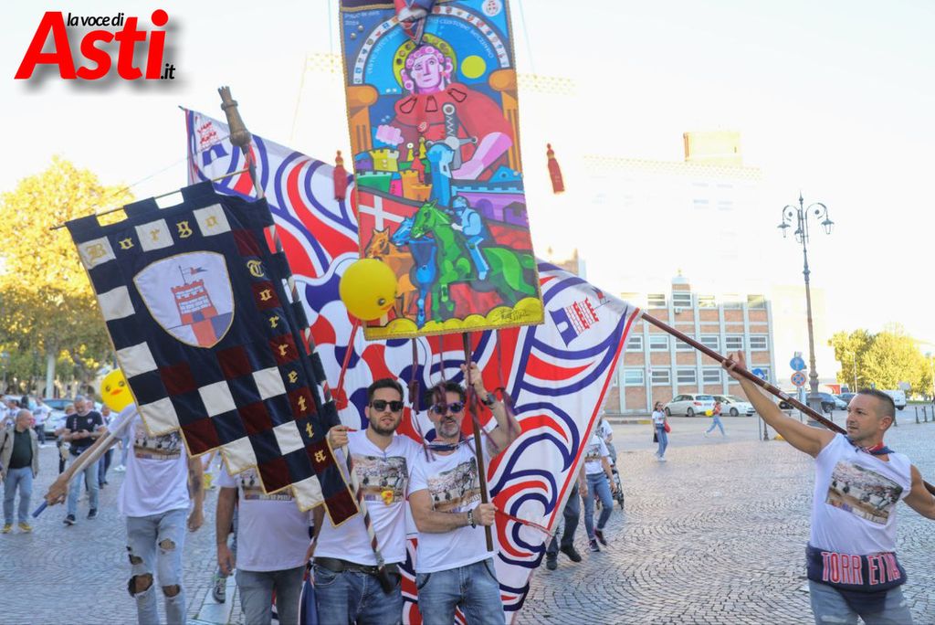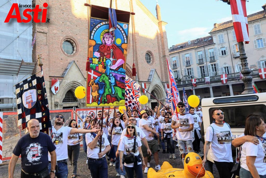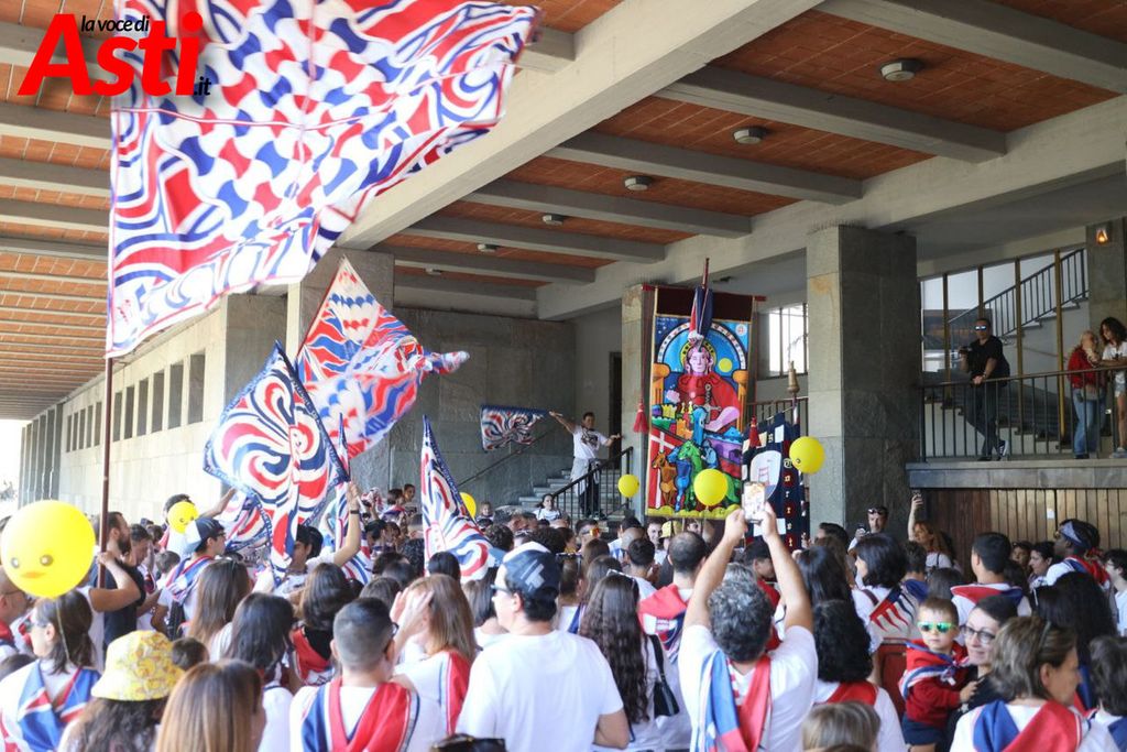 Il corteo, guidato dal rettore, Davide Penna è partito dalla sede del Comitato Palio in corso Ivrea 6 è arrivata sotto il Comune dove è stato ricevuto dal sindaco e presidente della Provincia Maurizio Rasero.