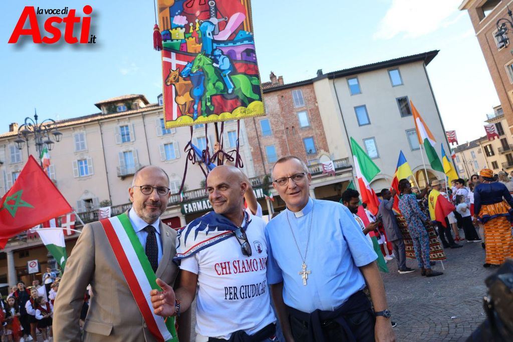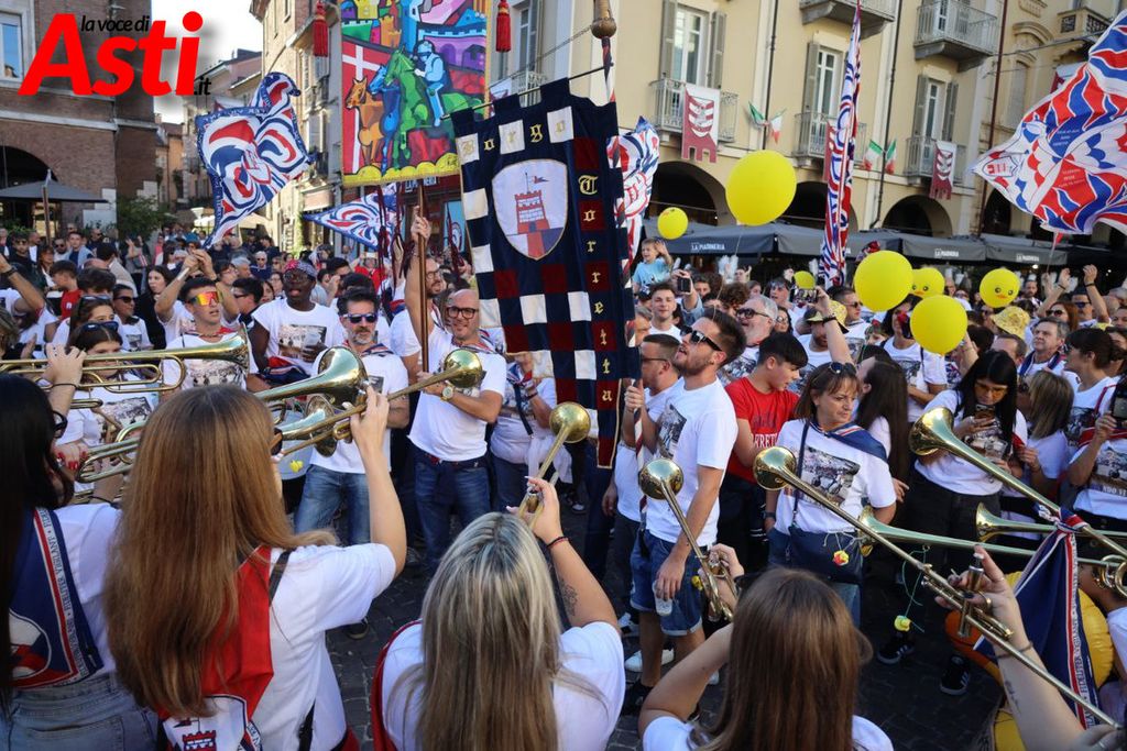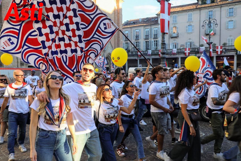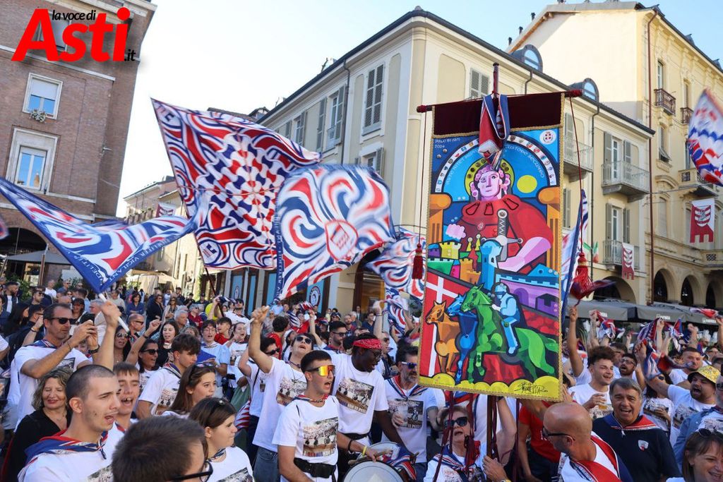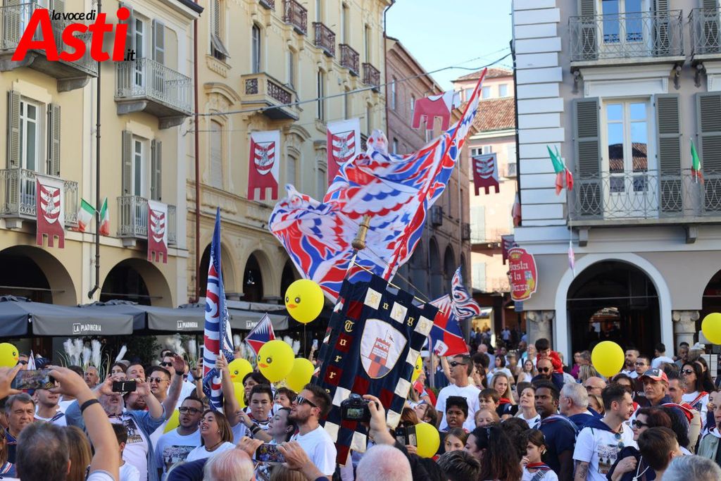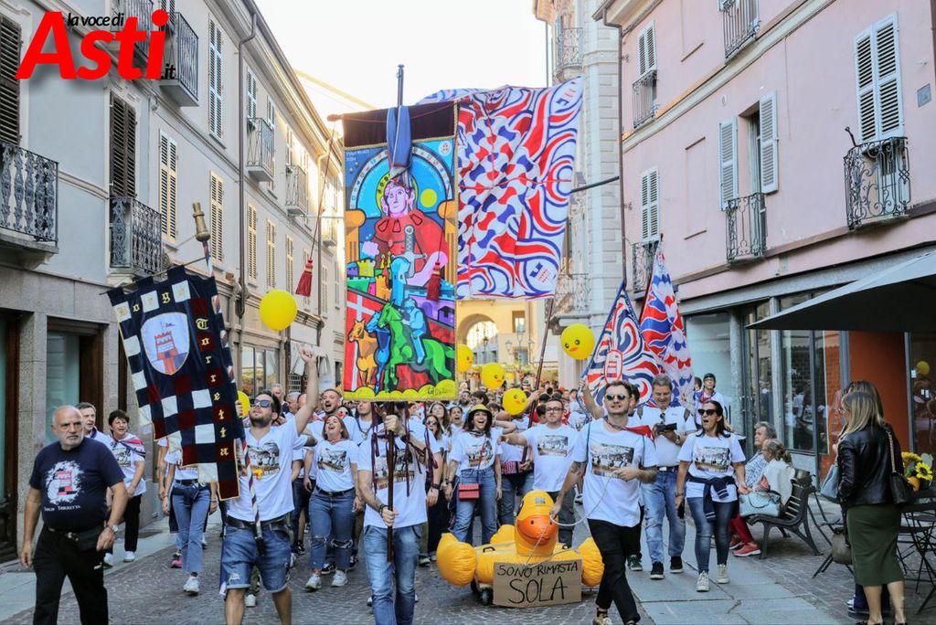 Il corteo, guidato dal rettore, Davide Penna è partito dalla sede del Comitato Palio in corso Ivrea 6 è arrivata sotto il Comune dove è stato ricevuto dal sindaco e presidente della Provincia Maurizio Rasero.