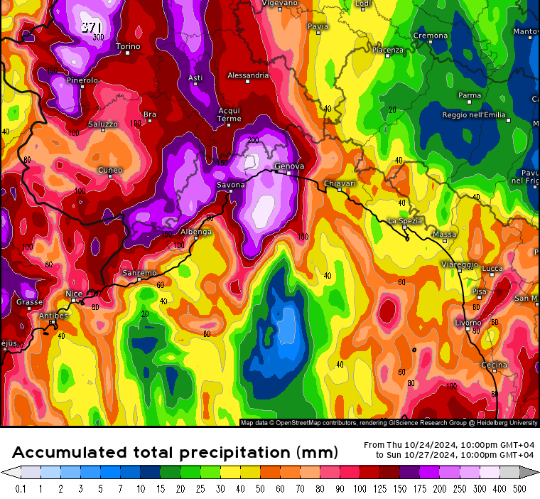 Le previsioni indicano possibili accumuli tra i 100 e i 150 millimetri nelle zone centrali dell'astigiano. Il territorio, che dall'inizio del mese ha già registrato tra i 150 e i 200 millimetri di pioggia, presenta evidenti segni di saturazione dei terreni. Le criticità maggiori potrebbero interessare l'intero sistema idrogeologico, le aree collinari del Monferrato, possibili fenomeni franosi e il rischio di piene dei corsi d'acqua principali e secondari