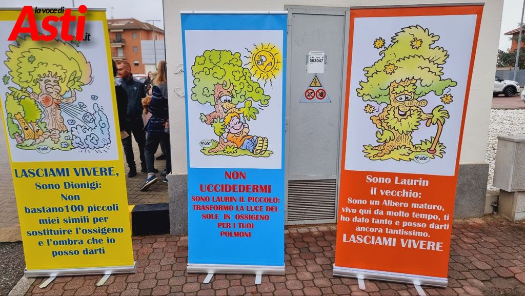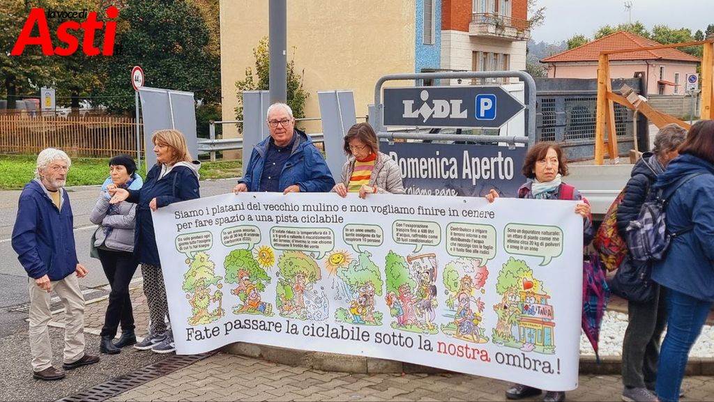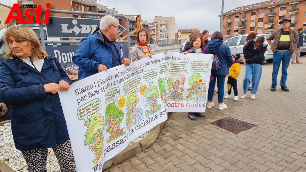 "Siamo i platani di corso Savona, nella zona dell'ex mulino e non vogliamo finire in cenere per lasciare spazio ad una pista ciclabile". L'accorato appello, scritto su striscioni, ha fatto parte, questa mattina del presidio che si è tenuto davanti al supermercato Lidl di corso Venezia ad Asti, da parte del neonato Comitato per la vita degli alberi di corso Savona, costituitosi con l'obiettivo di salvare sette platani minacciati di abbattimento.