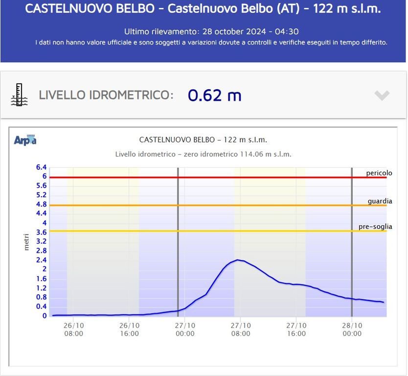 Nel fine settimana del 26 e 27 ottobre, il Comune di Castelnuovo Belbo ha attivato il Centro Operativo Comunale (COC) in risposta all'allerta meteo arancione emessa dall'Arpa Piemonte. La decisione è stata presa per fronteggiare le potenziali criticità legate alle intense precipitazioni che hanno interessato l'area nelle ultime ore.