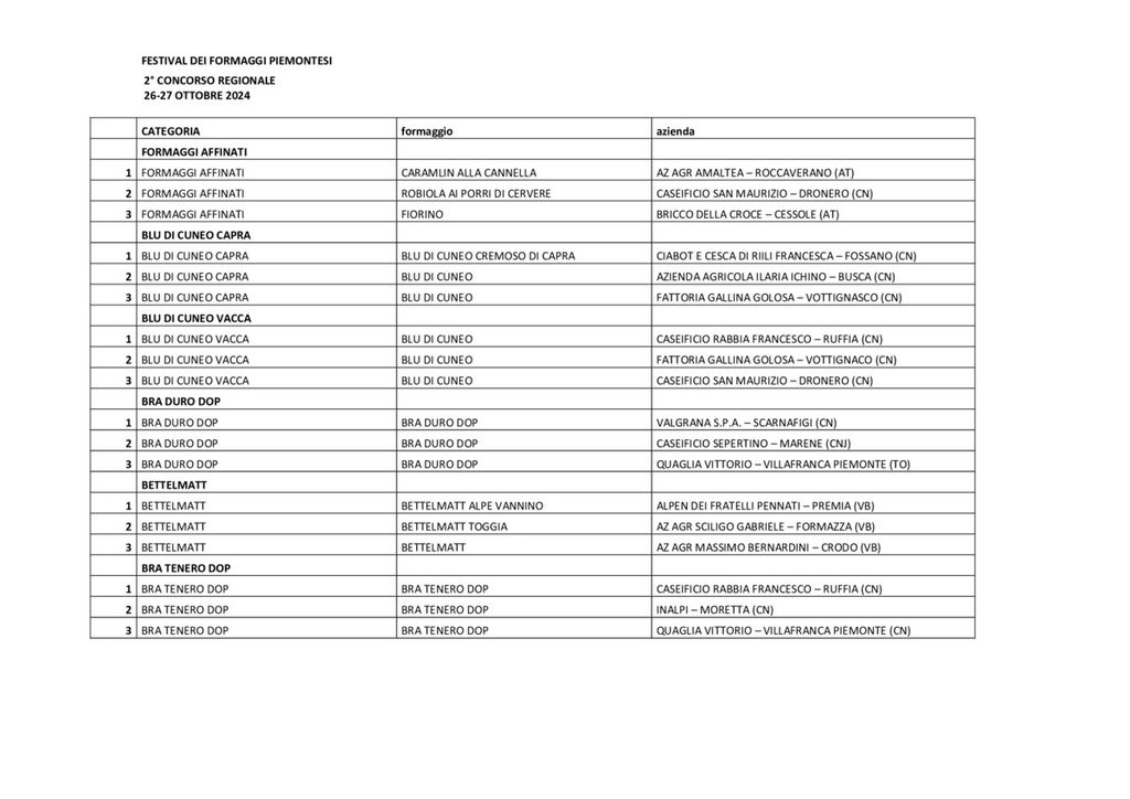 Il Concorso, unico a livello regionale in Italia gestito in tutte le sue fasi esclusivamente dall'Onaf, ha superato ogni aspettativa e ha battuto i risultati della scorsa edizione. Quest’anno sono stati presentati ben 207 formaggi, provenienti da 65 aziende. Tra queste, ben 46 hanno ricevuto almeno una medaglia tra quelle attribuite ai primi tre classificati di ognuna delle 27 diverse categorie (nel 2023 le categorie erano state 19).