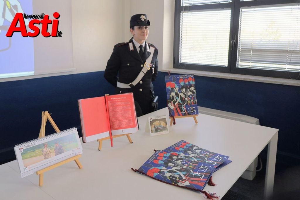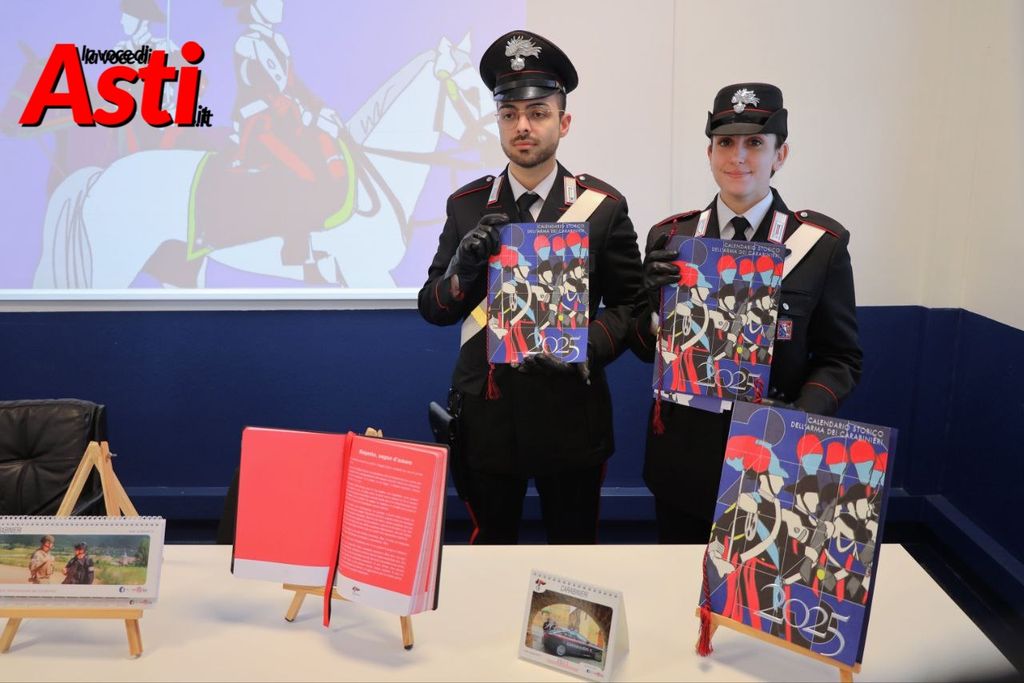 Anche i carabinieri di Asti hanno presentato il calendario storico, realizzato con il contributo dell'artista Marco Lodola e dello scrittore Maurizio de Giovanni, e i prodotti editoriali.