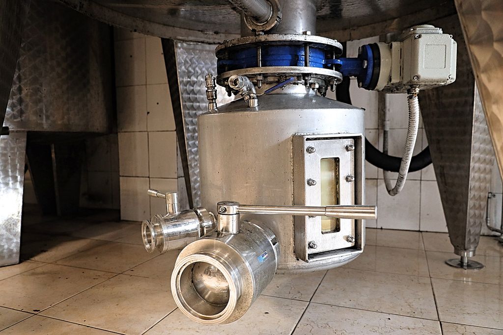Le parti solide vengono convogliate in automatico all'interno di un secondo piccolo serbatoio, posto sotto questa grande cisterna, grazie a dei raschiatori presenti in quello principale. In questo modo, ogni qualvolta sia necessario effettuare una sfecciatura, si dovrà agire soltanto svuotando e ripulendo un volume di poche decine di litri, anziché spostare tutto il vino. Il serbatoio permette infatti di effettuare la fermentazione, le chiarifiche e le stabilizzazioni proteiche e tartariche, eliminando le parti solide raccolte ogni qualvolta sia necessario.