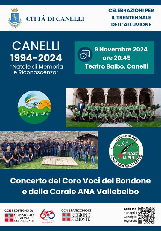 Sabato 9 novembre 2024, a Canelli si terranno le celebrazioni per il trentesimo anniversario dell'alluvione del 1994, un evento organizzato dal Comune di Canelli in collaborazione con il Consiglio Regionale. Questo momento di commemorazione vuole rendere omaggio a chi contribuì alla rinascita della città in un periodo particolarmente difficile e ricordare il forte impatto che l’alluvione ebbe sulla comunità locale.