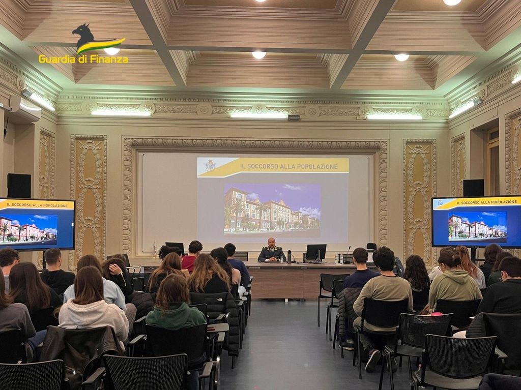 Ad iniziare il Liceo Classico "Vittorio Alfieri" di Asti, quando due classi del quarto anno (40 studenti) hanno avuto modo di ascoltare il Comandante del Nucleo Pef Asti - maggiore Raffaele Del Vecchio – che con la collaborazione di un giovane ispettore del reparto, ha illustrato, anche attraverso la proiezione di alcune slide messe a punto dal Comando generale, il ruolo rivestito dalla Guardia di Finanza, quale forza speciale di polizia economico-finanziaria, dando per cenni essenziali informazioni sui principali settori di intervento del Corpo.