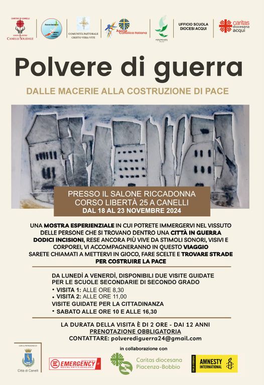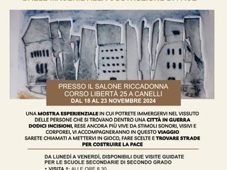 Dal 18 al 23 novembre il Salone Riccadonna di Canelli ospiterà la mostra esperienziale “Polvere di guerra - dalle macerie alla costruzione di pace”.