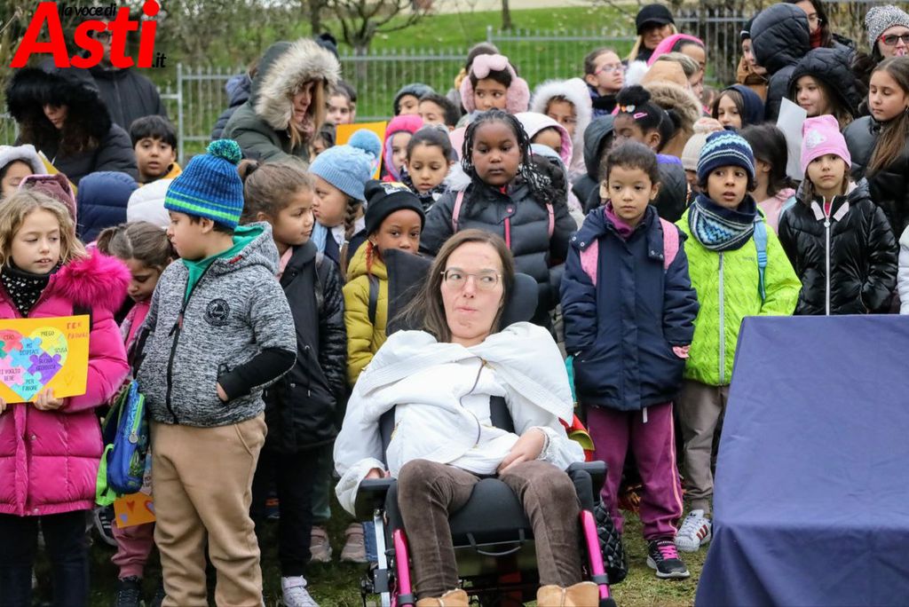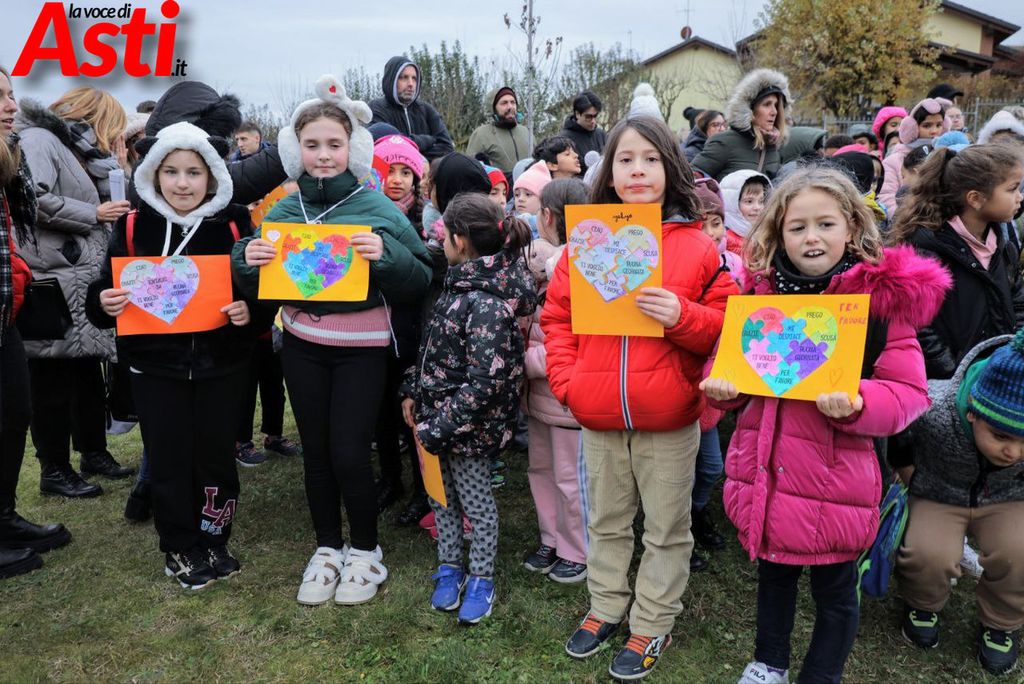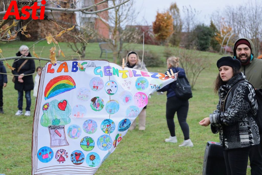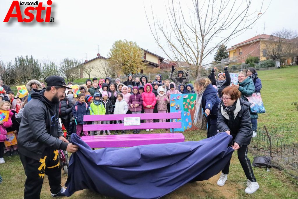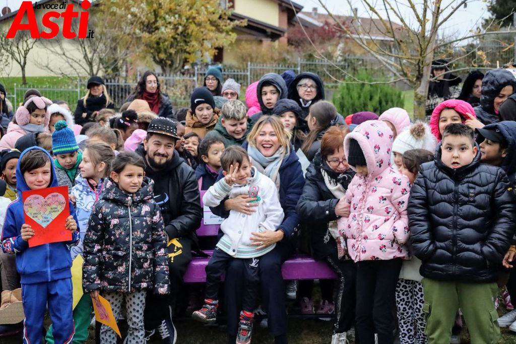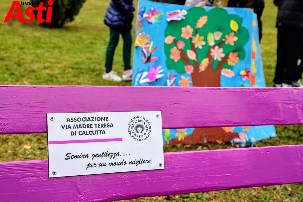 Ieri pomeriggio, giovedì 21 novembre 2024, circa 150 bambini e bambine delle scuole primarie Gramsci e Domenico Savio hanno popolato e rallegrato l’area verde di via Madre Teresa di Calcutta con cartelloni, disegni e canti legati al tema della gentilezza e ascoltato la storia della panchina viola, raccontata da David, cittadino astigiano ex residente del campo Rom, che l’ha donata alla città, e dai volontari dell’Associazione Madre Teresa di Calcutta che l’hanno rigenerata.