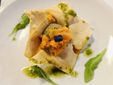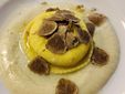 Raviolone al tuorlo burro nocciola morbido di topinambur e tartufo