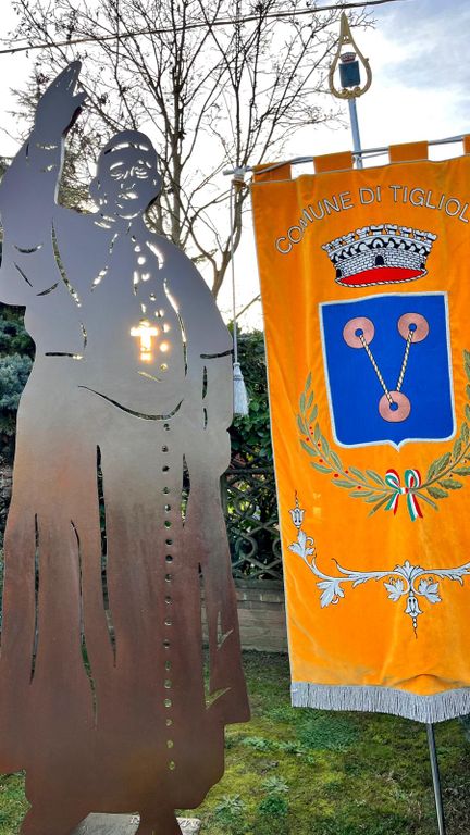 Due anni fa, infatti, il Santo Padre si recò proprio a Tigliole per salutare la cugina Delia Gai e il marito Franco Travo. Ed allora si è deciso di chiamare “via del Papa” la strada che si trova all’incrocio fra strada Stazione e strada Baldichieri, dove è stata posizionata una statua in metallo realizzata dal fabbro Roberto Manfieri e raffigurante Papa Francesco.