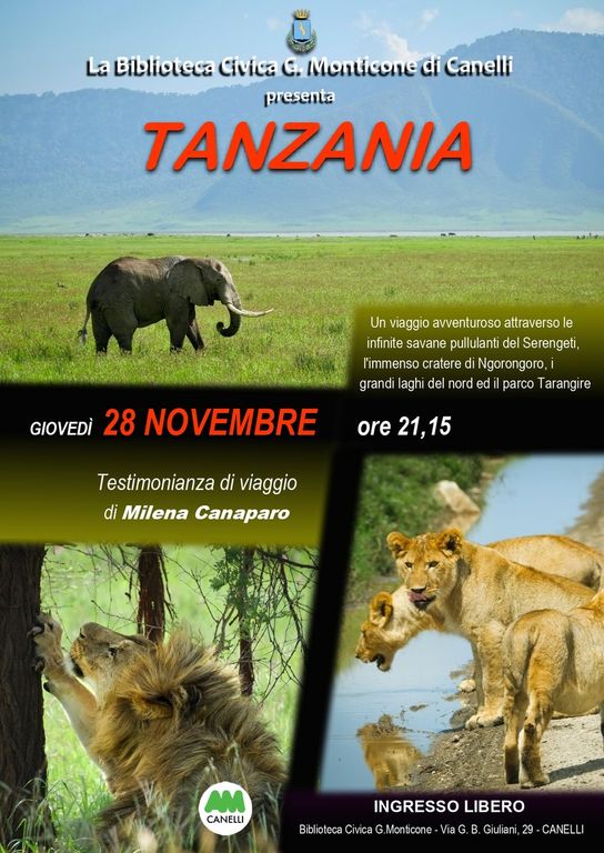 Giovedì 28 novembre, alle ore 21.15, la biblioteca Monticone di Canelli ospiterà un nuovo appuntamento della rassegna “Biblioteca e viaggi”, organizzata in collaborazione con l’Angolo dell’Avventura di Canelli. Protagonista della serata sarà Milena Canaparo, che condividerà la sua esperienza di viaggio in Tanzania.