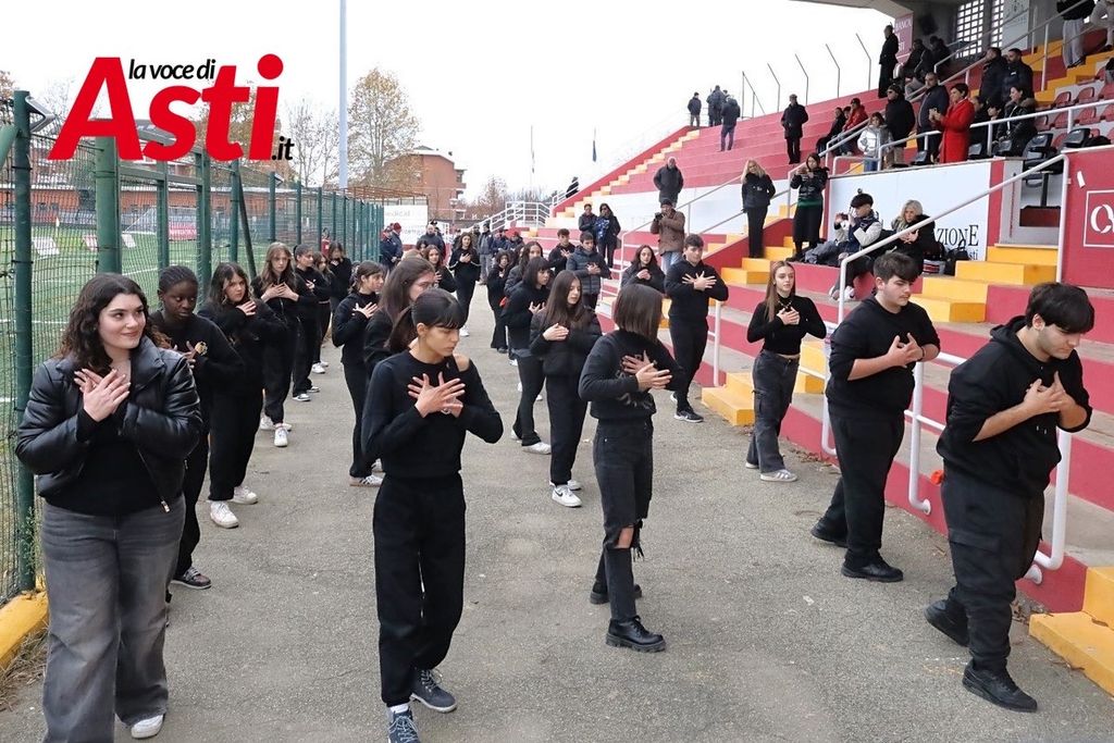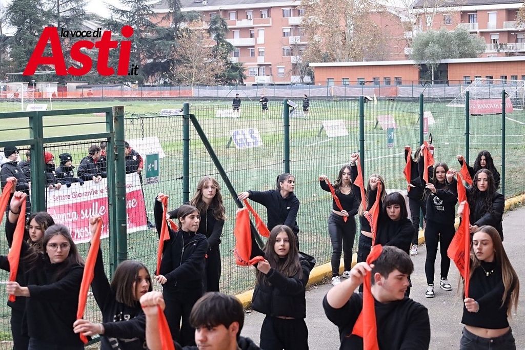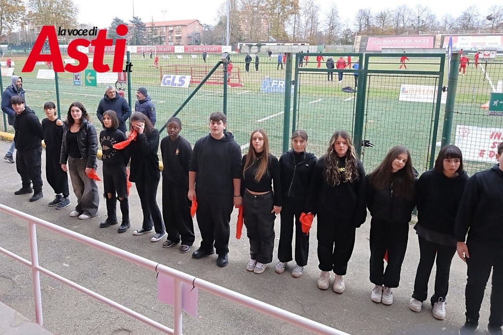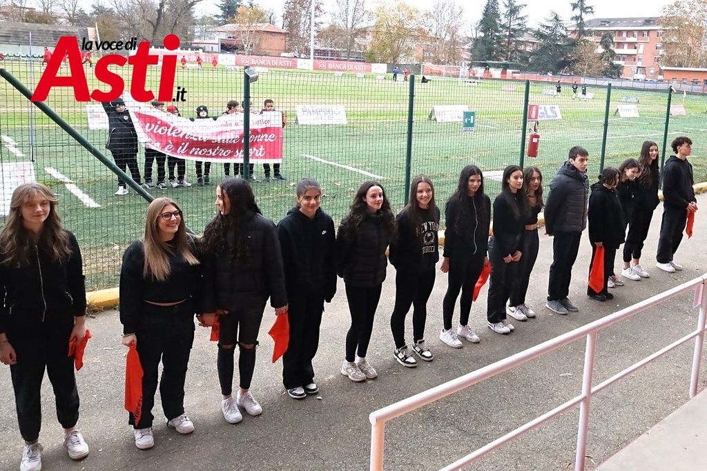Prima del calcio d'inizio, lo stadio "Censin Bosia" è diventato palcoscenico di un'iniziativa che va oltre lo sport. Grazie al contributo del CONI Piemonte e alla collaborazione con la Questura di Asti, è stato realizzato un flashmob di sensibilizzazione contro la violenza sulle donne. Protagonisti dell'evento sono stati gli studenti dell'Istituto Vittorio Alfieri di Asti che, insieme ai calciatori delle due squadre, hanno portato in campo uno striscione con il messaggio "La violenza sulle donne non è il nostro sport".